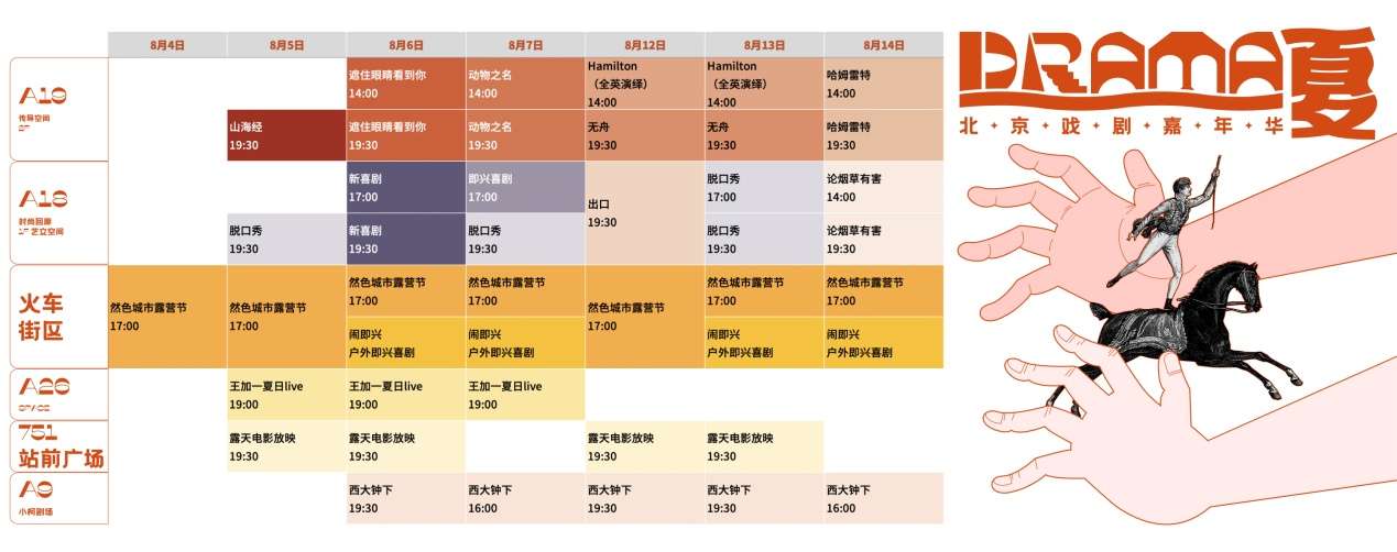 “我们将给文艺团体提供别具特色的演出舞台,为观众带来一场足不出京即可享受其中的盛大狂欢!”北京751园区副总经理严明丹介绍,首届北京戏剧嘉年华活动将精彩呈现戏剧、喜剧(脱口秀)、音乐现场live、城市露营市集、露天电影放映等不同形态的视听盛宴,在三伏天里唤醒大家关于夏天的激情与活力。