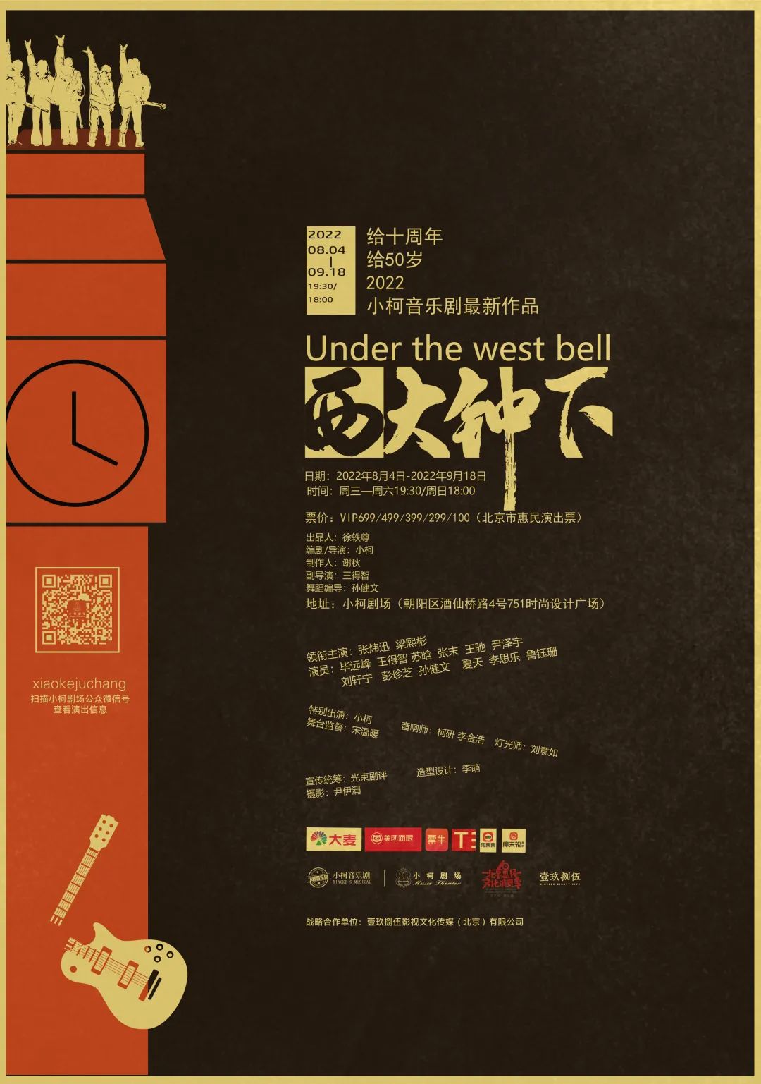 《西大钟下》是小柯老师基于真实乐队经历改编的音乐剧,是小柯老师送给自己50岁生日、送给小柯剧场十周年的特别礼物。