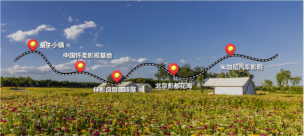 童牛小镇→中国怀柔影视基地→伴影良甜咖啡屋→北京影都花海→米珈尼汽车影院