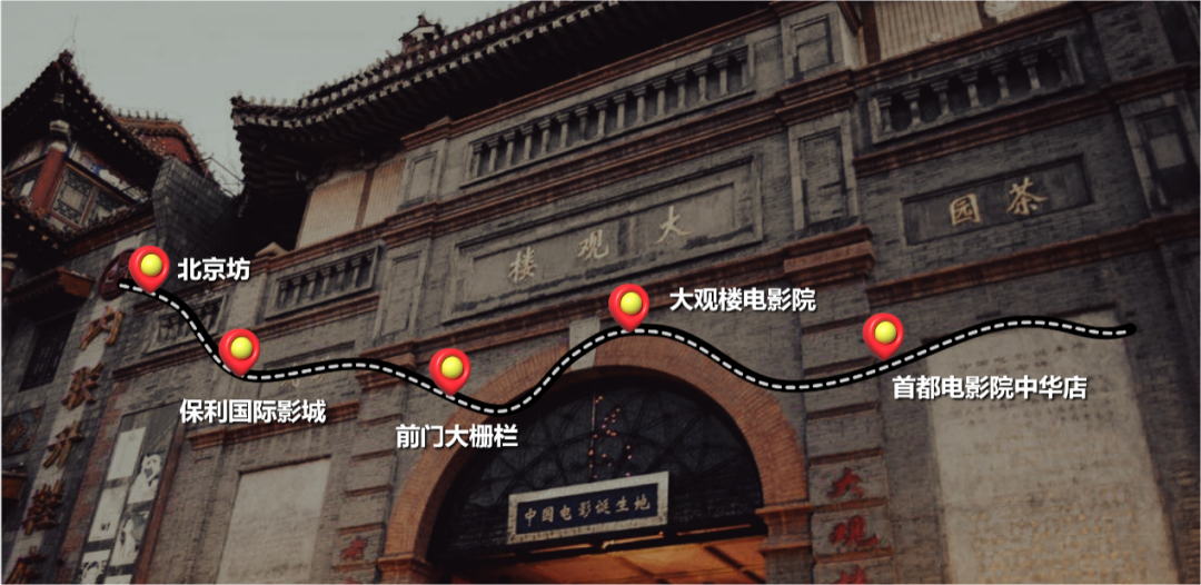 北京坊→保利国际影城→前门大栅栏→大观楼电影院→首都电影院中华店