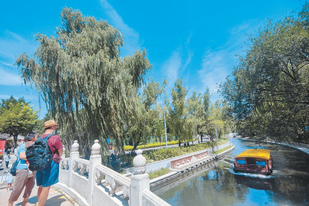 长河是历代京城的引水河道。清乾隆年间,长河经过疏浚修缮,成为供皇室成员从紫禁城前往颐和园、圆明园等西郊御苑的专用水路,因此又被称为“皇家御河”。长河分为北长河、南长河两段,现在说的长河,通常是指南长河,起自长河闸,流经麦庄桥、广源闸、白石桥,至北展后湖节制闸接转河入北护城河,全长约5.08公里。老北京有“天坛看松,长河观柳”之说。每年春天,长河两岸绿柳成荫,树影婆娑,如帘如幕,许多人到此游春赏景,渐成习俗。