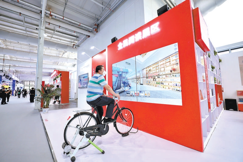 在首钢园1号馆,北京国际图书节开幕,观众体验“书香京城示范书店行”。本报记者 潘之望摄