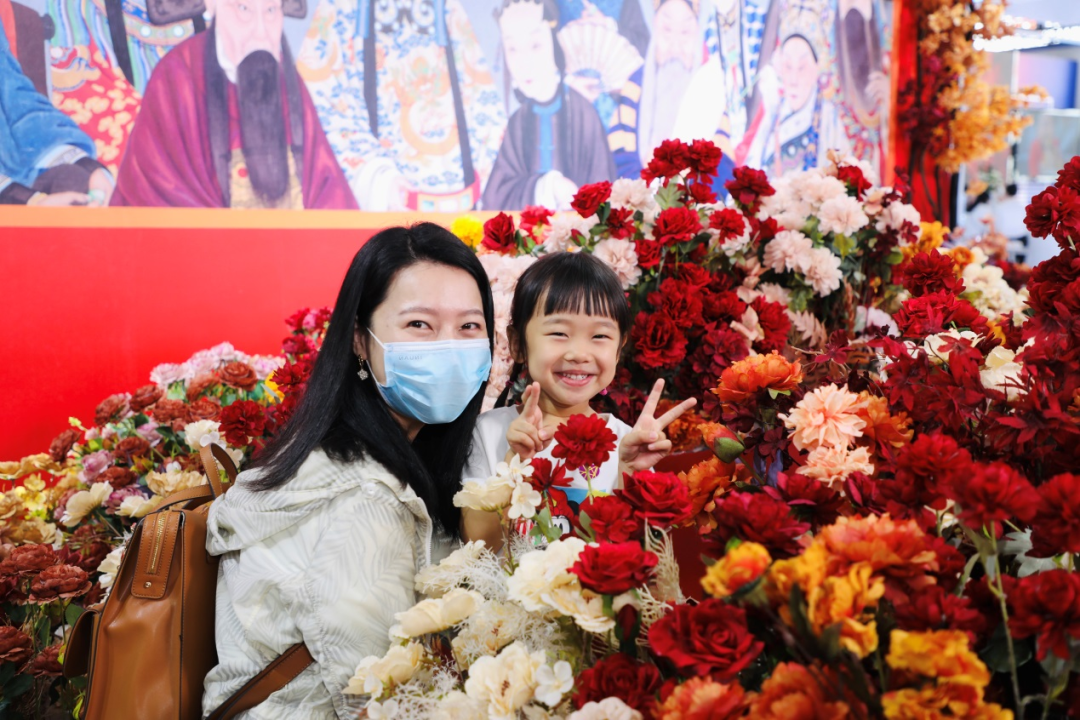京剧动态拍摄区搭建全新的沉浸式花海场景,通过花艺装饰营造出一个浪漫且别出心裁的京剧主题情境区,现场观众换上戏服,走入花海,与专业京剧演员演出“京剧大戏”,着实过了一把“京剧瘾”。专业摄影师记录下观众的最美姿态,照片即拍即得,照片上观众的姿势有模有样。
