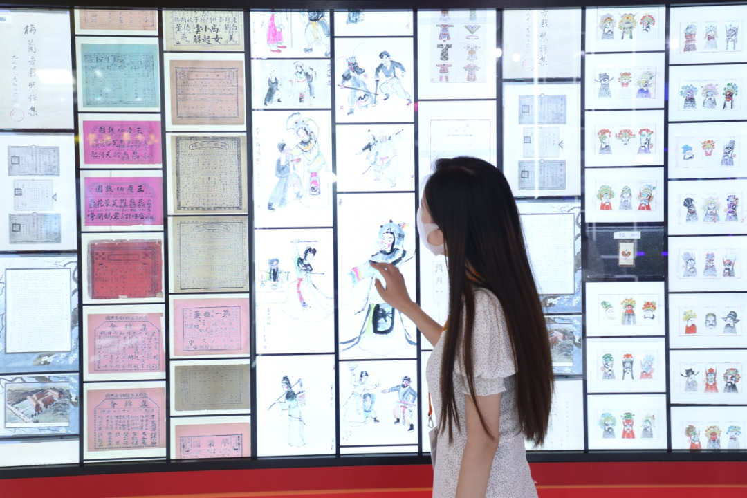 展区入口设置具有京剧元素的视觉形象,引入巨幅百变屏,以《同光十三绝》为主视觉,将大量京剧图片及影像史料以数字化形式呈现在观众面前,通过触摸大屏,点击自己感兴趣的京剧史料,带来极具视觉冲击力的观看体验。