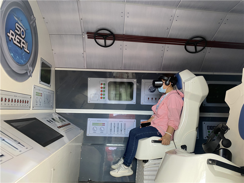 据介绍,SoReal“蛟龙号”载人深海模拟体验器采用真实蛟龙号等比例外仓外壳模型、座椅及六自由度运动平台,体验者坐进全息舱,利用万向座椅+VR眼镜,“一键切换”至深海,进行独一无二的深海探险之旅。
