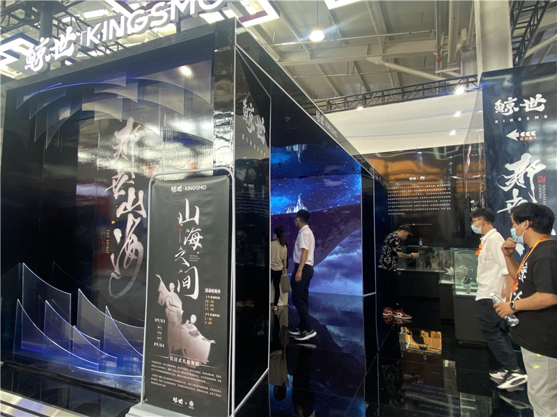 首钢园1号馆的“盛世华章谱新篇 踔厉奋进向未来”展区,沉浸式体验IP“那世山海”以《山海经》为原型创作出麒麟、鲛人、辟邪等首批6只神兽精品手办,再通过交互环境营造沉浸式体验。