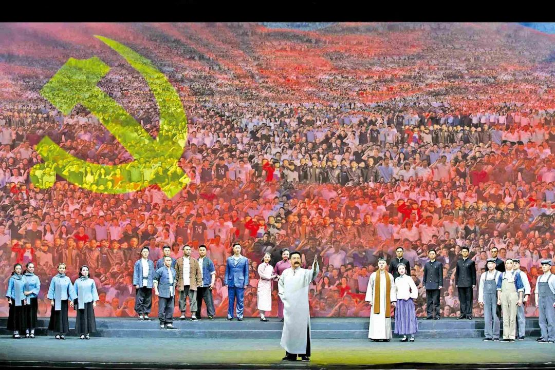 短短两个小时展现了李大钊这位无产阶级播火者短暂而又壮阔的一生,在唱腔、音乐、舞美设计上,打破了常规的京剧套路,融入了昆曲声腔和舞蹈元素,多种表达形式,表现出京剧艺术特有的程式化和虚拟性的表演特色。通过戏曲演员独特的唱腔唱法,把戏曲音乐与现代交响音乐相结合,别出心裁地将国际歌融入其中。同时结合戏曲演员的身段功底,能更好地呈现人物情绪状态,不仅符合东方审美视觉,也更为接近当时社会人们的真实状态。用中国传统艺术演绎现代故事题材,凸显民族特色,让观众既学习了解了大钊先生的时代事迹,又欣赏了传统的戏曲艺术之美。 奚派老生的表演精髓融入“李大钊”。剧中“李大钊”的扮演者是北京京剧院优秀的奚派老生演员张建峰。无论是传统戏还是现代戏,奚派老生在塑造人物的时候会更富有文人气息,古貌苍朴、清新自然的人文情感,这种充满书卷气的感觉非常符合“李大钊”作为北大教授的身份。而奚派“以字定腔、以情行腔、错骨不离骨”唱腔特色,很贴合李大钊先生的情感表达,不仅能够更好地抒发其深厚的家国情怀,同时也是用情传意,与观众产生情感共鸣。