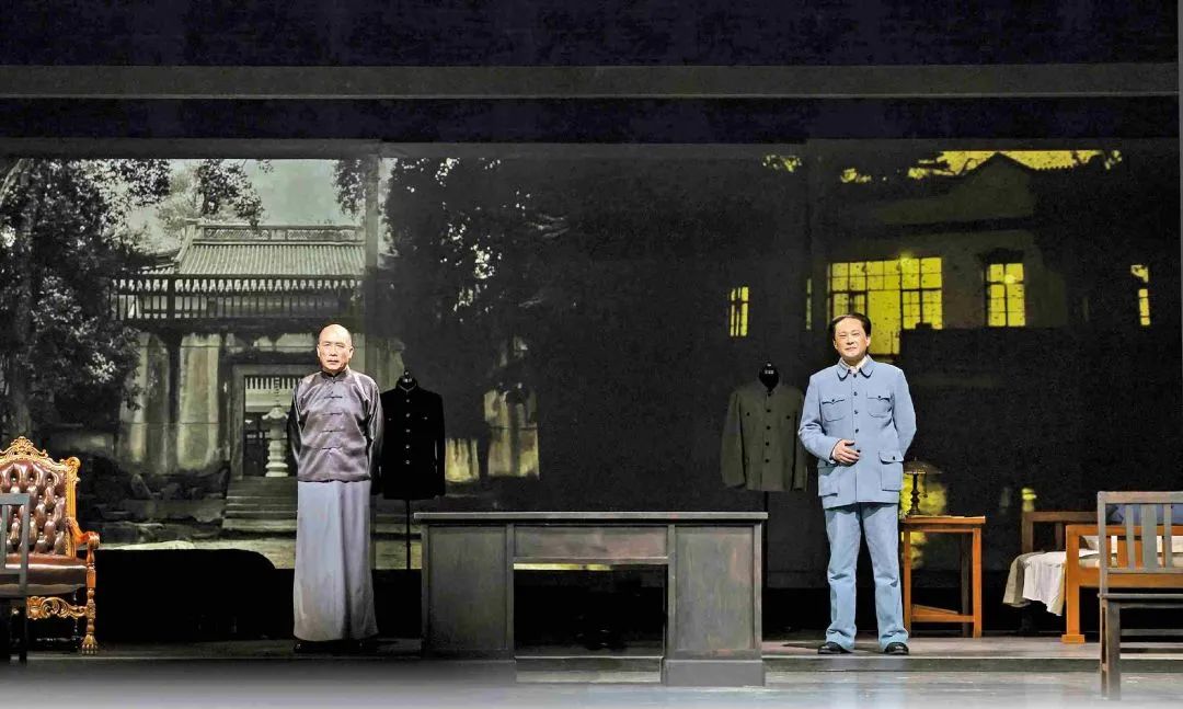 话剧《香山之夜》用“一桌二椅”的经典戏剧场景,充分运用间离手法让演员从角色中跳脱出来加以评述,叙事的角度新颖独特。让毛泽东与蒋介石这两位历史人物跨越时空展开心灵对话,从各自的视角剖析国家民族命运,构成了激烈的戏剧冲突,也谱写出波澜壮阔的历史征程,也激励着当今的我们:不忘初心,砥砺前行。