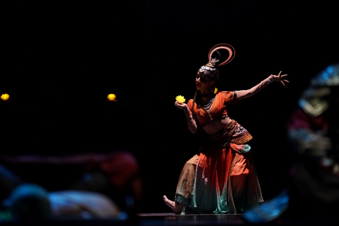 舞剧《五星出东方》是庆祝中国共产党成立100周年优秀舞台艺术作品展演剧目,刚刚拿下了2022年第十七届文华大奖。该剧是在党的文艺方针指引之下,借在古丝绸之路新疆和田段出土的“五星出东方利中国”汉代织锦护臂,展开讲述的一个动人故事。首先,该剧用艺术的手段体现出新时代为民族而舞、为时代而舞、为人民而舞的精神主旨,用生动的艺术形象讲述出精彩的中国故事,用优美的舞蹈语汇诠释生生不息的民族精神。其次,作为融合艺术创新与历史想象的舞剧精品,它善于运用历史讯息来展开想象,这些可视证据成为导演、编舞们解读特定时代结构与表象的可靠依据,从而认识过去,并将其以视觉表象之力呈现在舞台上。最后,该剧运用了多种舞蹈语汇,汉唐古典舞、敦煌舞、中国古典舞、中国民族民间舞等,从民风民俗舞蹈到宫廷乐舞,不同舞种放在一起,却融合得自然到位。