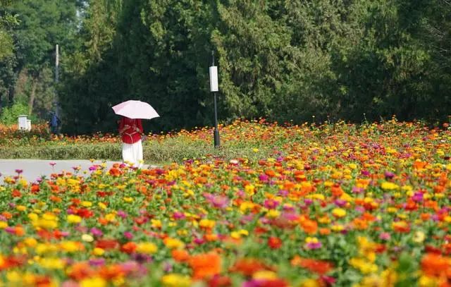 圆明园金秋游已开幕,在金秋时节走进圆明园,欣赏宜人的园林风光,享受一场丰盛的“金秋盛宴”。圆明园西部的洞天深处、勤政亲贤、藻园等景区种植了百日草、波斯菊、硫华菊、矢车菊、孔雀草等花卉,总面积达万余平方米,现已进入最佳观赏期,片片花海色彩艳丽、繁花似锦。