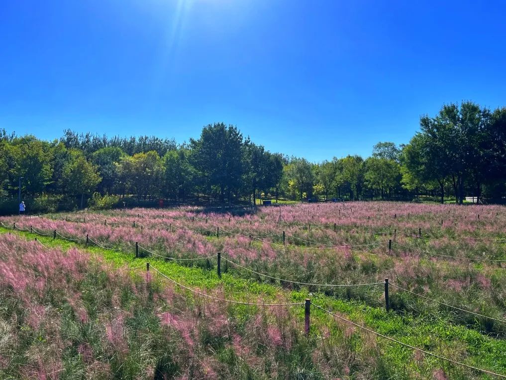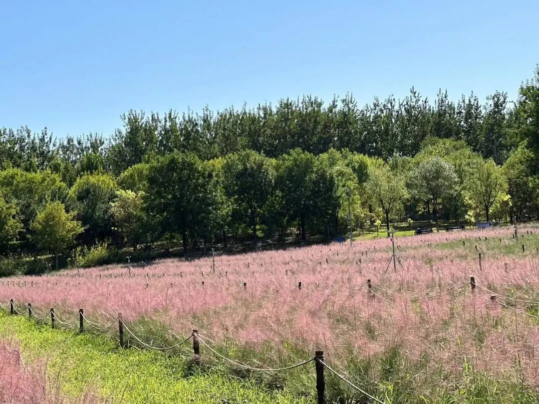 花田野趣景区东侧今年新引进了当下极具观赏性的粉黛乱子草。粉黛乱子草原产于北美平原,属禾本目、禾本科植物,别名毛芒乱子草,花色为顶生云雾状粉色花絮,花语寓意为“美丽的等待”。粉黛乱子草花期9月下旬-10月末,在盛开时节可呈现粉色云雾海洋的壮观景色,朦胧梦幻,像云霞一样灿烂,是奥森公园又一新的花卉观赏景观。
