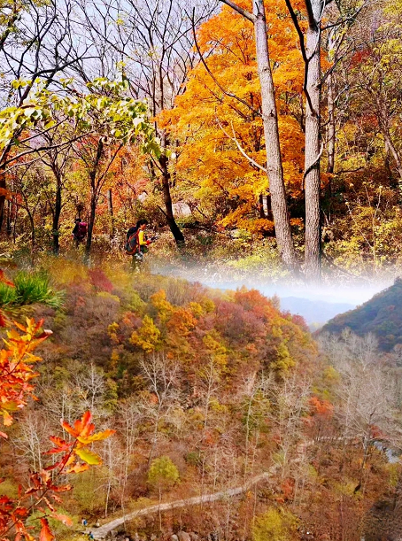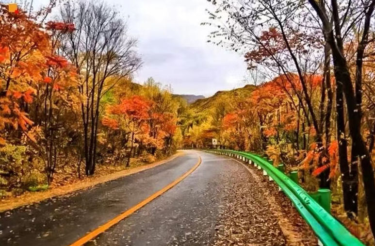 玉渡山风景区地处海陀山下、龙庆峡风景区水库的上游,这里有着独特的小气候,气温低、湿度大、昼夜温差大,是北京秋天最早到来的地方之一。去往景区,需要开车经过长长一段盘山公路,沿途随处可见秋景。
