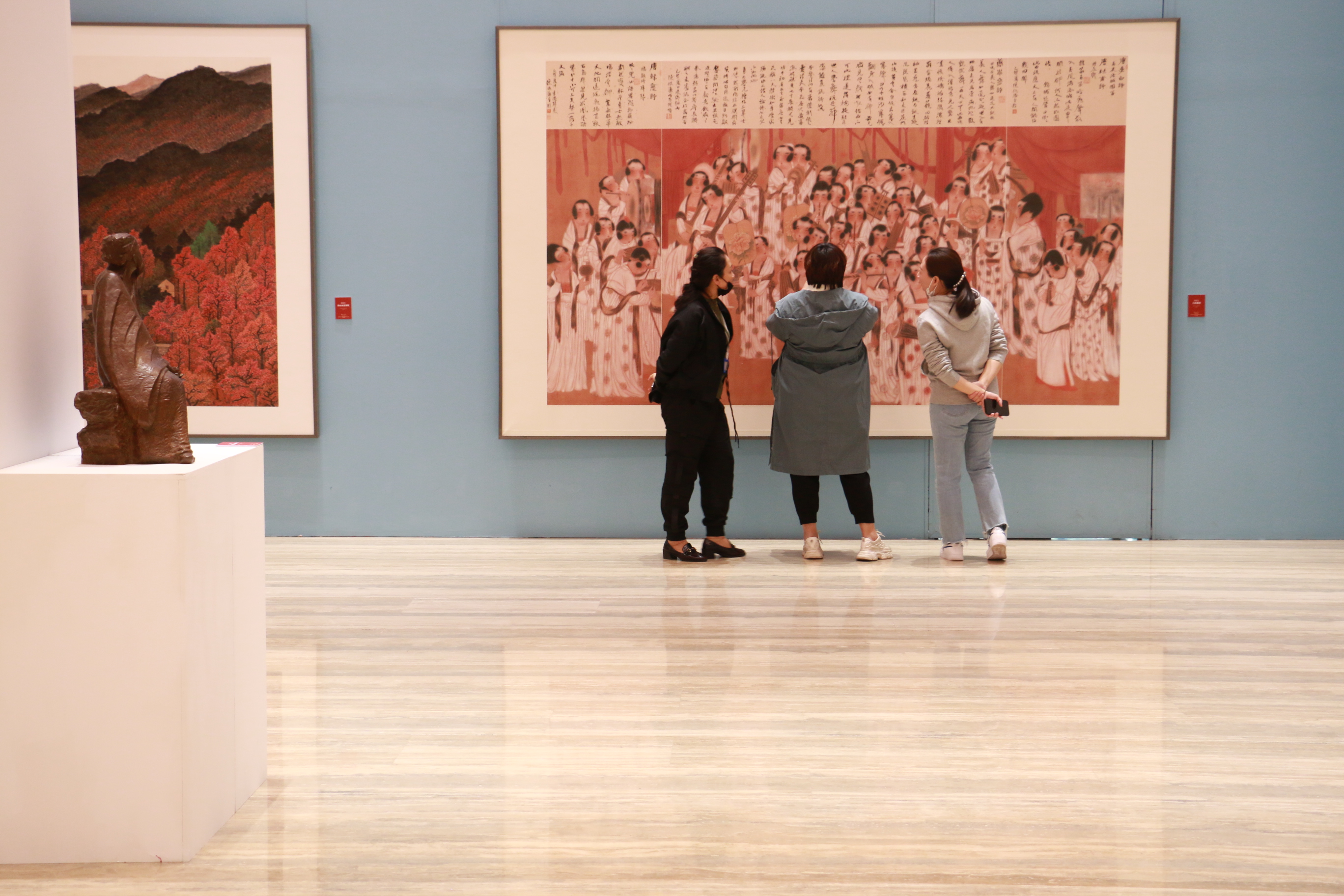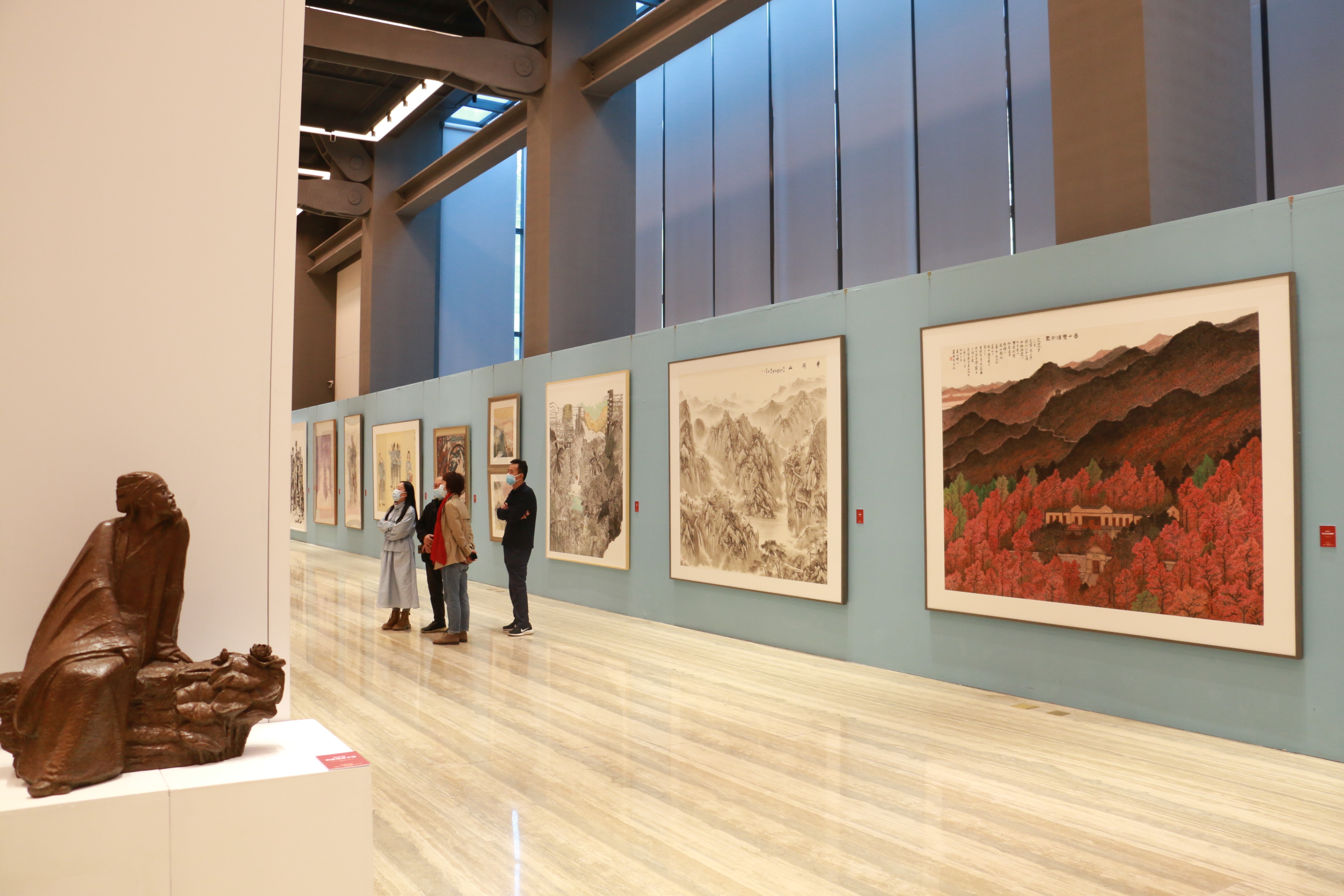 中国国家画院近年来围绕国家重大活动和历史时间节点,组织实施了一系列的创作研究项目,包括“一带一路”国际美术创作工程、扶贫颂主题创作、黄河文化主题创作、抗疫题材创作、北京冬奥题材创作、建党百年系列创研活动、纪念毛泽东同志《在延安文艺座谈会上的讲话》发表80周年系列创研项目等。用丹青作和声,唱响时代的主旋律,聚焦民族复兴伟业。展览将持续至11月8日。