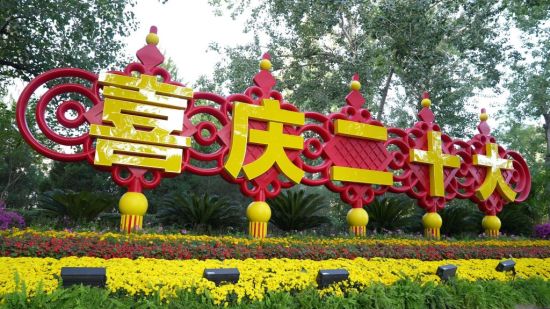 当前,“祝福祖国”巨型花果篮文字中的“喜迎二十大”已转换为“喜庆二十大”。此外,在天安门广场南侧人民英雄纪念碑前花台,长安街沿线主题花坛中双子座大厦布置的“喜迎(庆)盛会”花坛、京西宾馆西门布置的“喜迎(庆)二十大”花坛,相关文字也已完成转换。