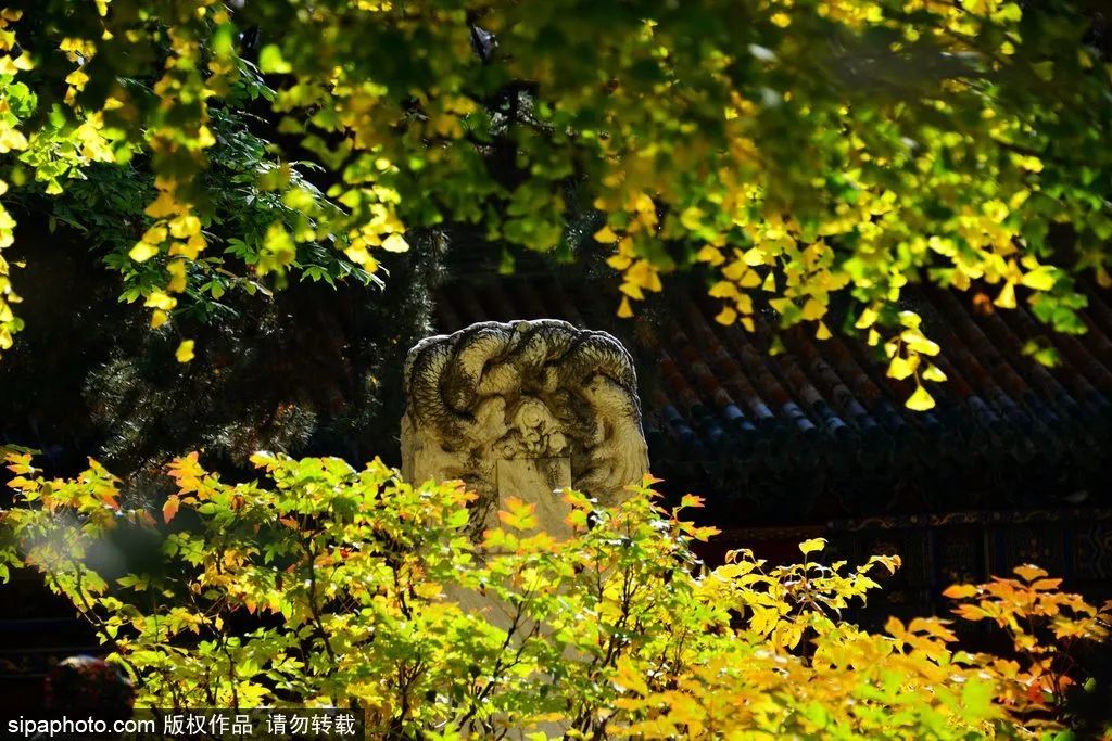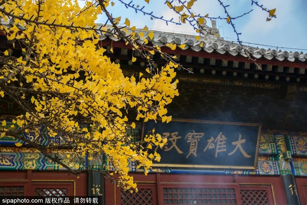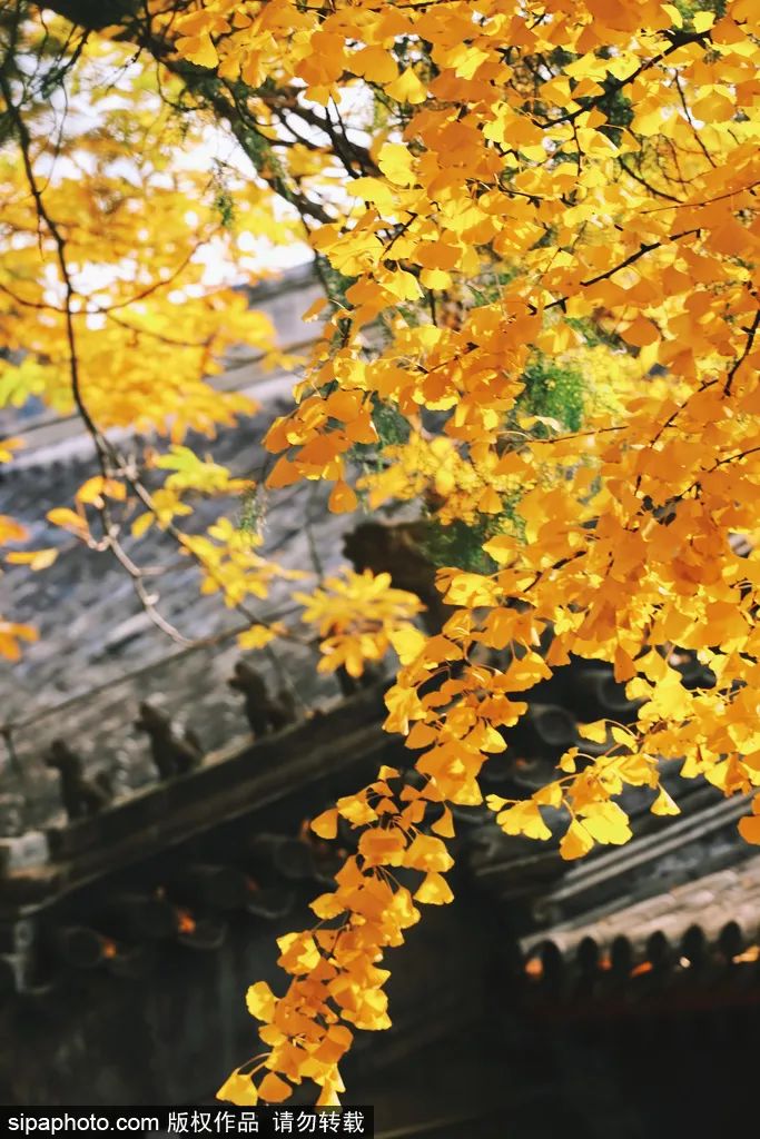 天高云淡,银杏渐染,每年10月中下旬至11月中旬,就到了戒台寺的银杏美景最佳观赏时期。