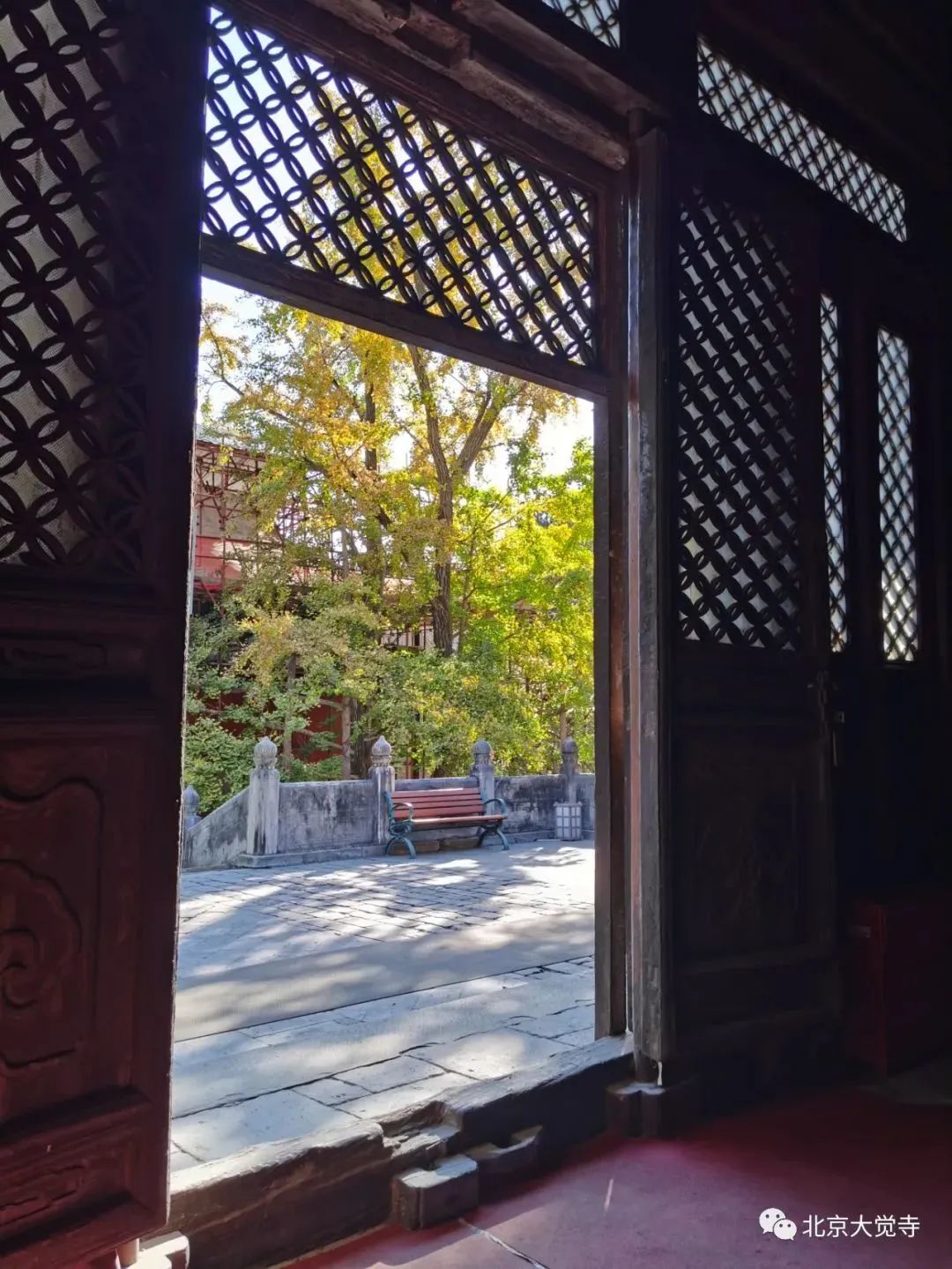 每年深秋时节,明黄的银杏扇叶会铺满整个庭院,高高的枝干随性向四周伸展,与红墙灰瓦、禅房殿堂交相辉映,构筑起岁月沉淀后的别样美丽。