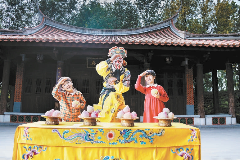 散布于园博大道上的各种戏曲互动装置,可以让游客秒变剧中人,体验“沉浸式”游园的乐趣。观众还可以到园博园北京园参观北京戏曲文化发展成就展、黑胶唱片特展和戏曲视听展以及京剧旦角艺术展。