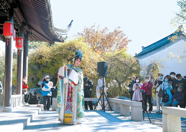 在园博园忆江南上演多个折子戏,“园林中的戏曲 戏曲中的园林”,在中式园林中,不经意间和好看的戏曲演出撞个满怀,是中国戏曲文化周的独有体验。