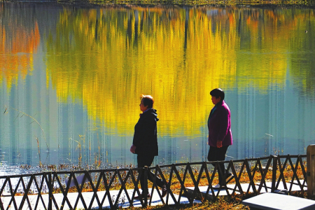 11月13日,初冬的太原和平公园依旧多姿多彩,市民在阳光下的湖边散步休闲。近年来,太原市加快城市公园建设和绿化提档升级,目前拥有综合性公园21个,专类公园17个,社区公园、街头游园等315个,完成园林绿化覆盖面积15840公顷,绿化覆盖率达到44%。
