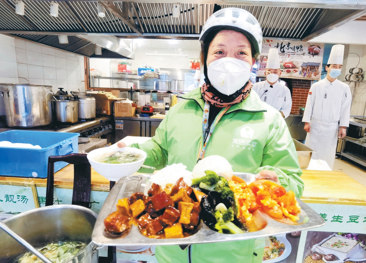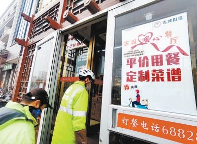 走进餐厅,温暖干净的就餐环境、营养美味的平价菜品,让前来就餐的快递小哥脸上洋溢着幸福的笑意。厨师长专门为他们定制了七天不重样的营养美食餐谱,一份15元的暖心套餐包括一荤两素,还有主食,汤品不限量。餐厅经理组建了“古城暖心餐厅”微信群,每天把更新的菜谱发到群里,方便大家订餐。考虑到快递小哥工作的特殊性,用餐时间定在下午一点到两点这个时间段,提供全方位暖心服务。