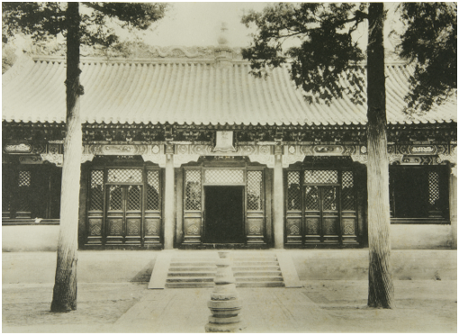 进山门后,左右为钟鼓楼,正殿为法轮殿,五开间,歇山五彩琉璃瓦屋面,玲珑琉璃正脊。