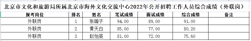 附件:北京市文化和旅游局所属北京市海外文化交流中心2022年公开招聘工作人员综合成绩(外联岗)