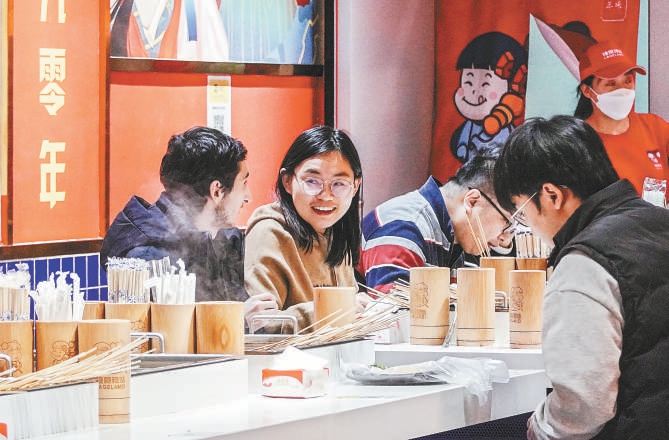 本报讯(记者 杨天悦)随着出门“逛吃”的市民增多,不少餐馆迎来恢复堂食以来的首个消费小高峰。记者获悉,部分热门餐厅又重现排队等位的场景,堂食客流的回升也让重点商圈开始热闹起来。