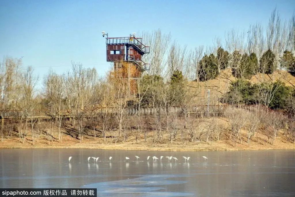 天气渐寒,大运河森林公园在宁静中更平添了一份冬韵。蓝天与园景相映,水面被冰封分割成不同的色块,芦苇随风起舞,水鸟栖息,为公园冬日景色增添了几分情趣,游客漫步其中,仿佛置身静谧的画卷。