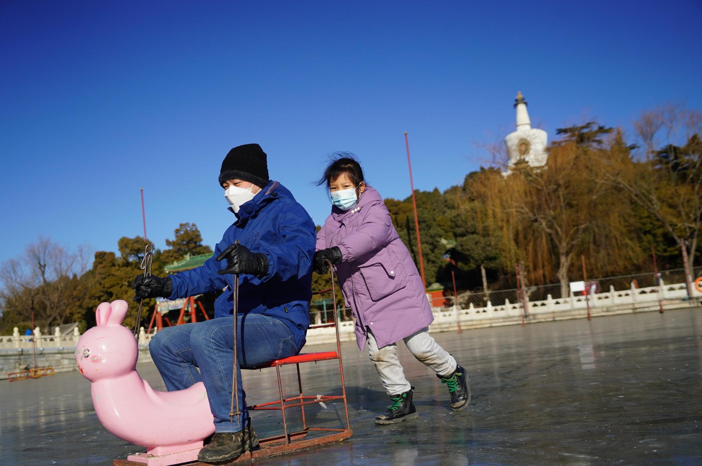 12月29日,北海公园冬季冰上娱乐活动启动,南门荷花湖内1.5万平方米冰场开放迎客,不少游客带着孩子上冰体验,感受“驰骋冰场”的快感。据悉,今年公园首次实行网络售票,游客可提前7天线上购票。