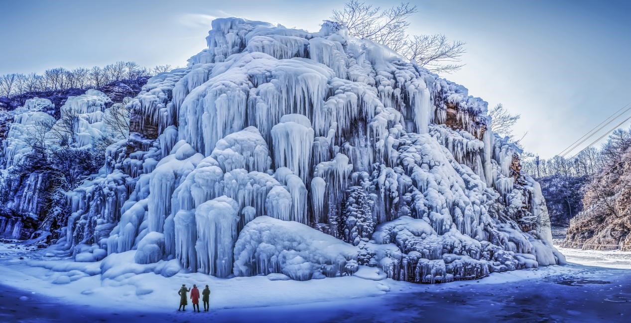 在京东大峡谷景区内部,大大小小的冰瀑冰挂竞相开放,它们或缀在高崖之上,或悬挂于峡谷两侧,造型各异、晶莹剔透的冰瀑,绚丽旖旎、极其亮眼,到这里仿佛进入了晶莹剔透的冰雪梦境。