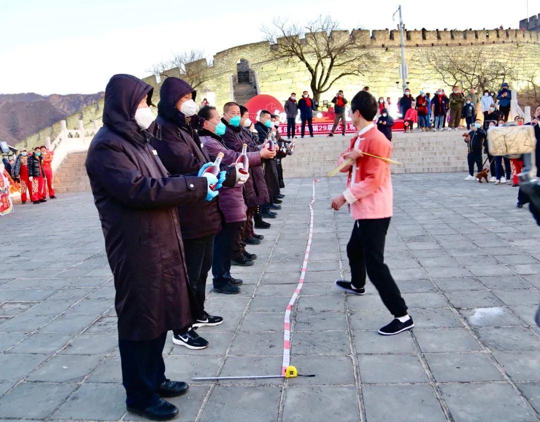 本次慕田峪长城依旧精心布置现场,以游客自由观赏新年日出、祈福祝愿为主,专门为本次元旦迎日出祈福活动特别定制数字纪念票为本次活动添色不少;另外,除了舞龙舞狮表演外,特别邀请的青年武术家谢德胜老师,表演“40秒内用双节棍最短时间开10个香槟瓶盖”,用这特别的方式一起迎接新年的日出,开启新的一年;与此同时,本次观日出活动还特别提供了颇受好评的丰富早餐,游客凭票即可享用。