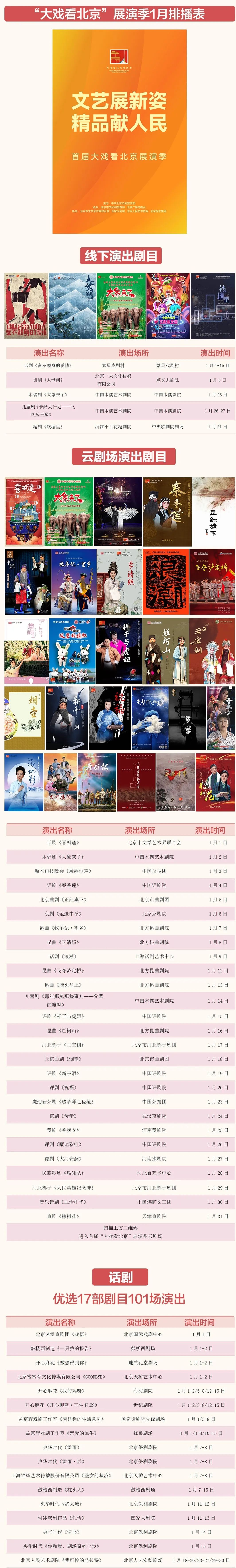 本月还将迎来央华·保利剧场戏剧节、国家京剧院“迎新春”经典戏曲展演等节展活动,进一步丰富活跃首都文艺演出市场。