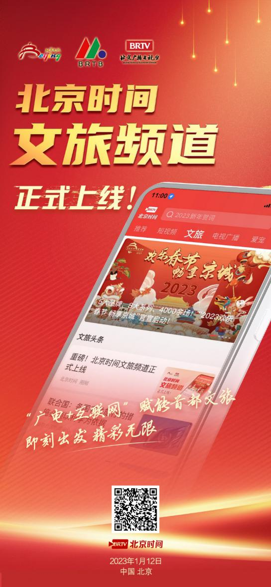 据了解,2022年12月31日,“文旅频道”在北京时间网站和客户端上线试运行。该频道一出生就自带“媒体融合”的基因,是大小屏联手、音视频结合、“广电+文旅”深度合作的创新之举。频道设置了“文旅头条”“文旅北京”“寻味北京”“文旅vlog”“文旅直播”“文旅资讯”等多个特色板块。