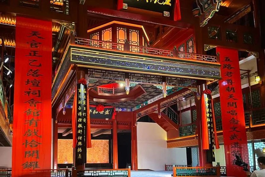 正乙祠戏楼是戏曲艺术诞生、发展、繁荣的见证,众多戏曲大师均曾在此楼献艺。承载着岁月痕迹的戏楼让数百年戏曲发展历史变得可以感知和触摸,它把几百年前的“文艺范儿”带到了今朝,看戏之外,走在回廊上,红木雕栏在灯光的映照下流光溢彩,即使不听戏也能给人美的享受。