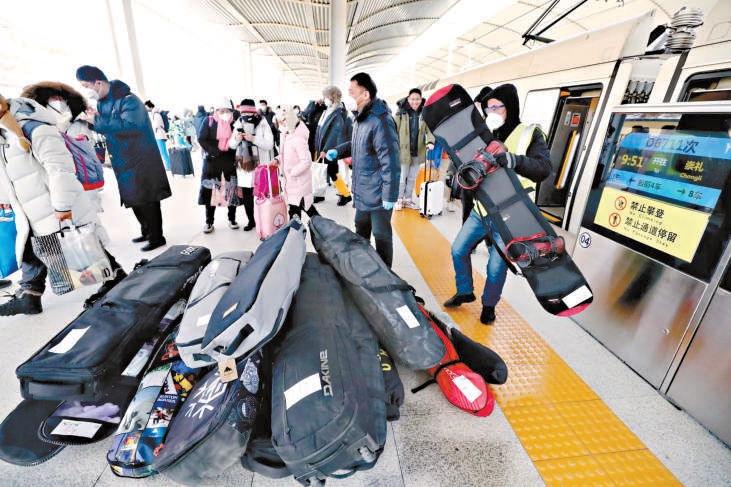 在太子城站,工作人员也为前来滑雪的旅客提供便捷的出行服务。车站与太舞、云顶、万龙等雪场建立了沟通机制,密切关注客流变化,实行一日一图,动态调整列车单编或重联,适时增加运能,保障滑雪游客的出行需求。“我们会及时把列车开行、编组变化向雪场和崇礼区交通部门通报,共同做好交通接驳工作,确保游客下车后有接驳车第一时间送至雪场,节省旅途时间。”张家口车务段太子城站党总支书记刘雪平介绍。