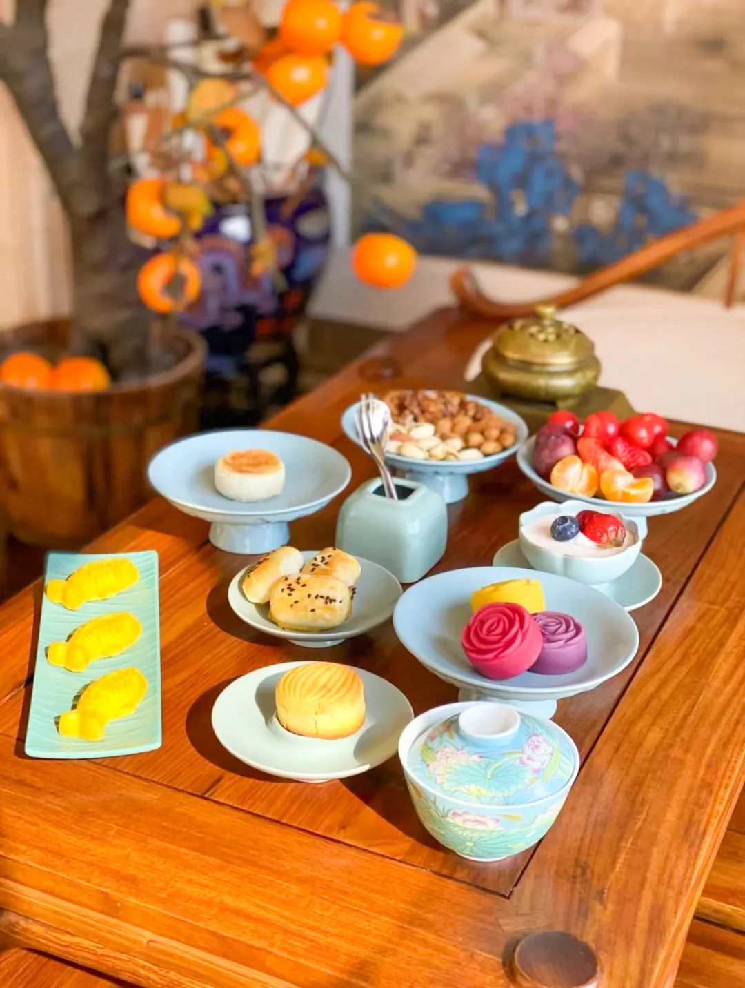 店内所用的瓷器都是专门“汝山明”定制,典雅又大气。点心基本上都是古法手制或者半手工制作的,选用上好的原材料制作而成,让人口齿留香。