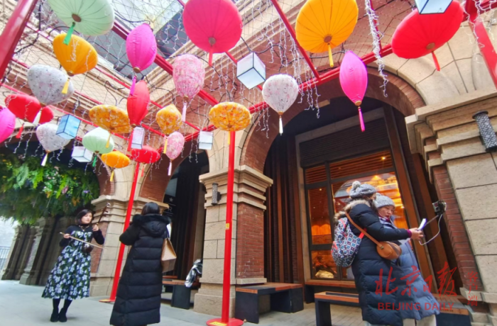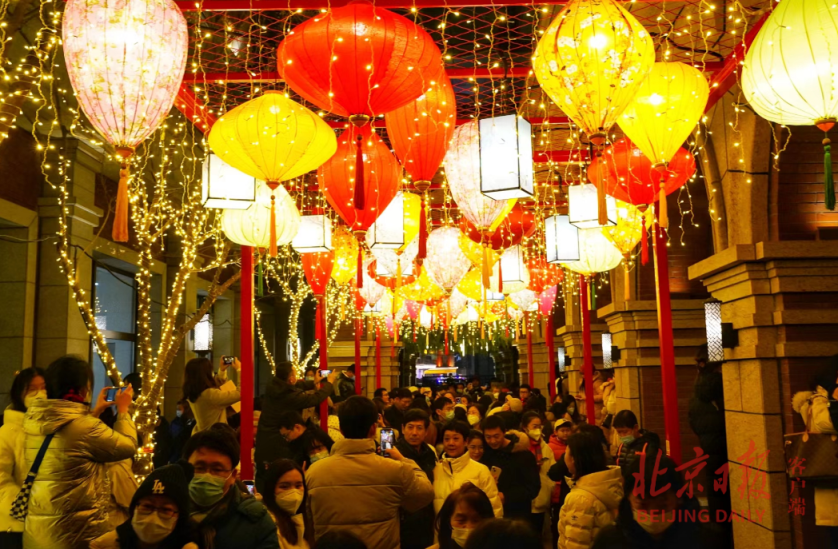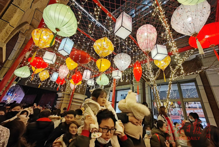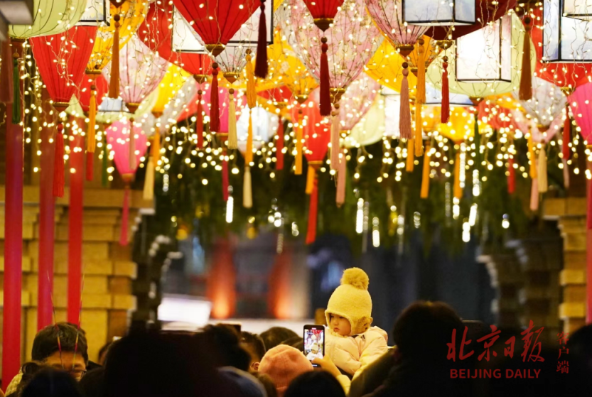 又是一年元宵佳节,在前门大栅栏北京坊,坊间花灯高悬,各式灯笼把整个街区装扮得分外喜庆,构成一幅美丽画卷,吸引游客驻足拍照留念,共享佳节川流不息的热闹与欢腾。