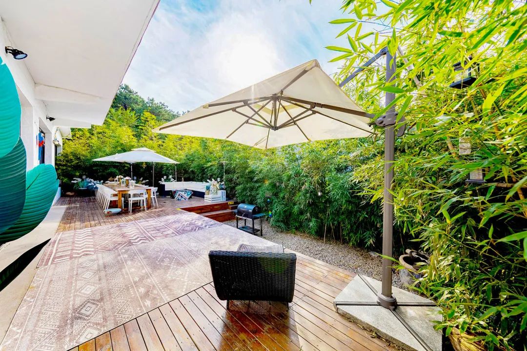 民宿的花园内翠竹遍布,园内分布有小池塘、流水景观、小径汀步和各式花丛景观,景色四季变换,宾客可在春夏秋季赏花,冬季观翠竹银雪。