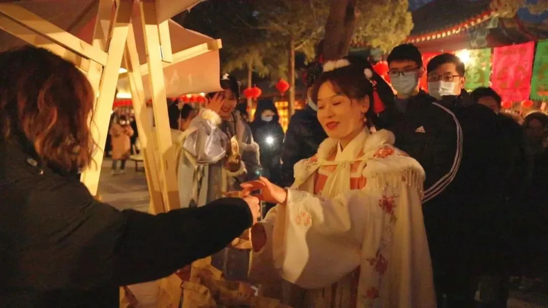 夜场还特别推出了游客身着汉服可以免费游园的活动,很多市民身穿各种样式的汉服慕名而来,景区内到处喜气洋洋,人如潮涌。在千年古寺中着汉服游园,有种穿越时空的完美融合,带来难以抗拒的视觉吸引。