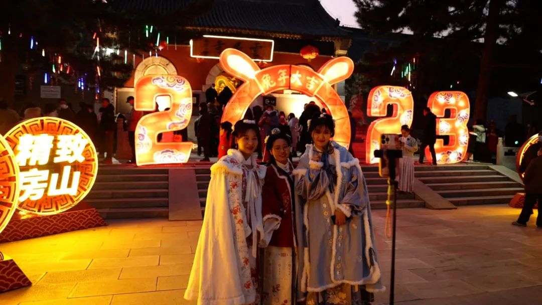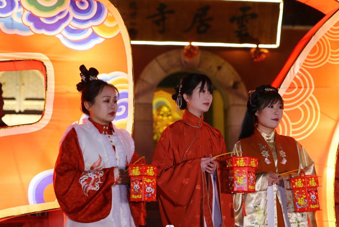为贯彻落实“六大房山”发展要求,加快促进文旅融合发展,持续讲好房山故事,全力打造云居金名片,云居寺文物管理处结合馆际文化特点和中华优秀传统文化,在元宵节到二月初二期间(2023年2月5日至2月21日),正式开启了以“大美房山 福满云居”为主题的夜场沉浸式文化体验活动。元宵节夜场共有1600余名游客参与其中。
