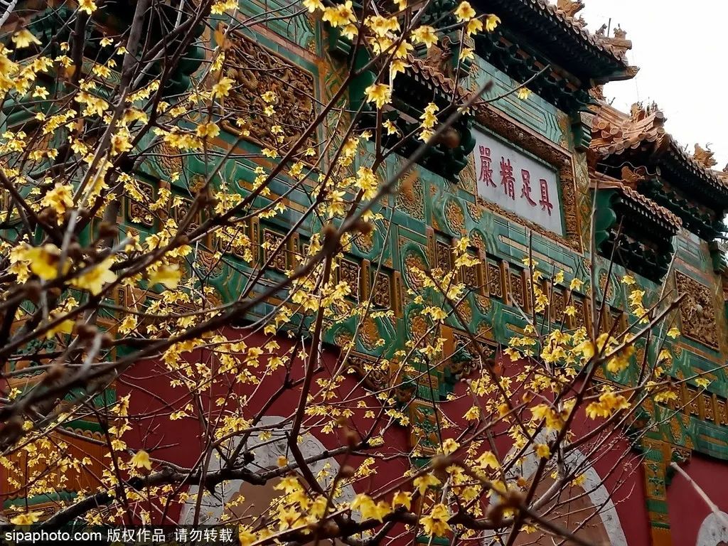 近日,卧佛寺内的蜡梅陆续进入花期,主要分布于入口处放生池的周边以及三世佛殿的东侧路,预计整体花期持续至3月中旬。