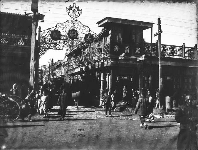 清代杨静亭《都门杂咏·市廛(chán)门》中有一首诗,描述了大栅栏繁盛景象:“画楼林立望重重,金碧辉煌瑞气浓。箫管歇余人静后,满街齐响自鸣钟。”