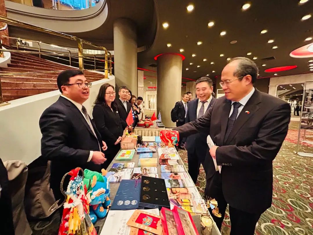 推介会现场,朝阳区文化和旅游局、通州区文化和旅游局布置了精美的北京文旅图片展和企业展。推介会前后,肖军正大使等与会嘉宾兴致勃勃地进行了观看和交流,对北京大运河文旅集团、泡泡玛特等展示的精美文创品赞不绝口。