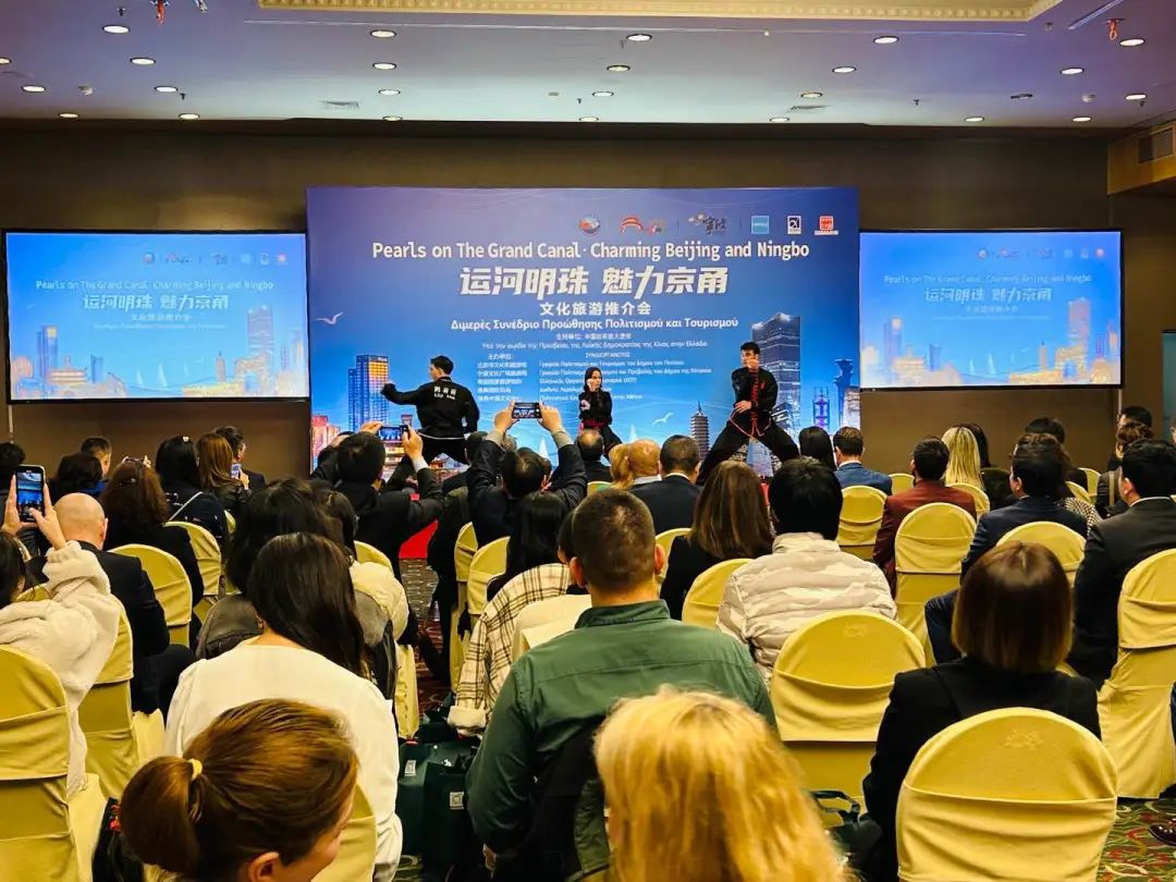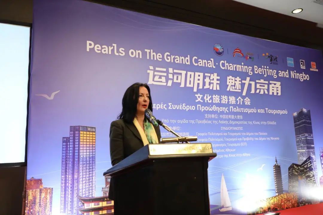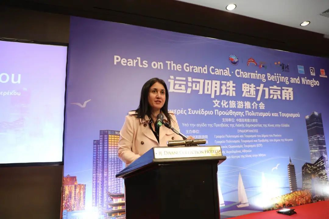 进入推介环节,雅典中国文化中心主任任刃以中国大运河为主题,串联介绍了大运河两端城市北京和宁波的不同风情,与现场嘉宾多次进行互动,引起热烈掌声。推介北京时,突出了中轴线、亮马河国际风情水岸、北京环球影城、大运河森林公园等为代表的特色精品旅游资源和“北京旅游专家”计划、“北京新发现”入境旅游产品手册、“144小时过境免签”政策等一系列培训项目及宣发活动。