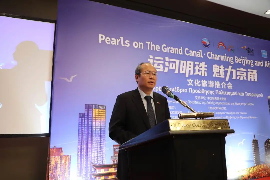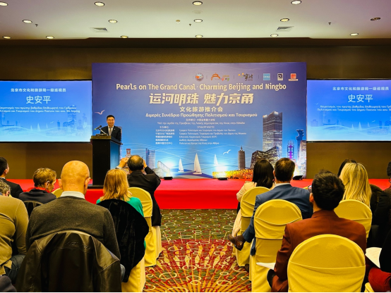 【北京旅游网报道】当地时间2023年3月1日晚,北京市文化和旅游局联合宁波市文化广电旅游局以“运河明珠 魅力京甬”为主题,在希腊首都雅典举办了文旅推介活动。中国驻希腊共和国特命全权大使肖军正、希腊国家文化和体育部国际司司长阿纳斯塔西杜、希腊旅游组织主席代表维克丽、北京市文化和旅游局一级巡视员史安平、宁波市文化广电旅游局二级巡视员徐小设出席并致辞。100多名当地旅游行业协会、知名旅行商及媒体代表参加此次推介活动。