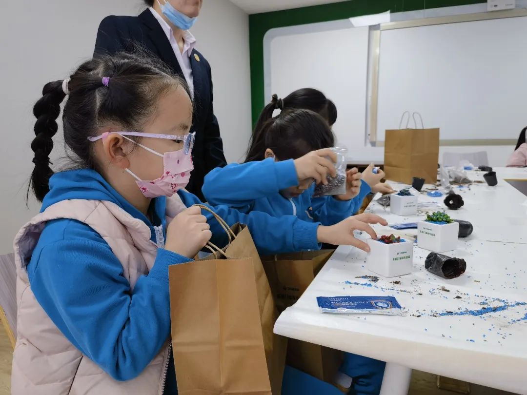本次活动便是利用厨余有机肥作为盆栽的“护花泥”,让垃圾变废为宝。随后大家便亲自动手栽培绿植,现场气氛热烈,每个人都忙得不亦乐乎。