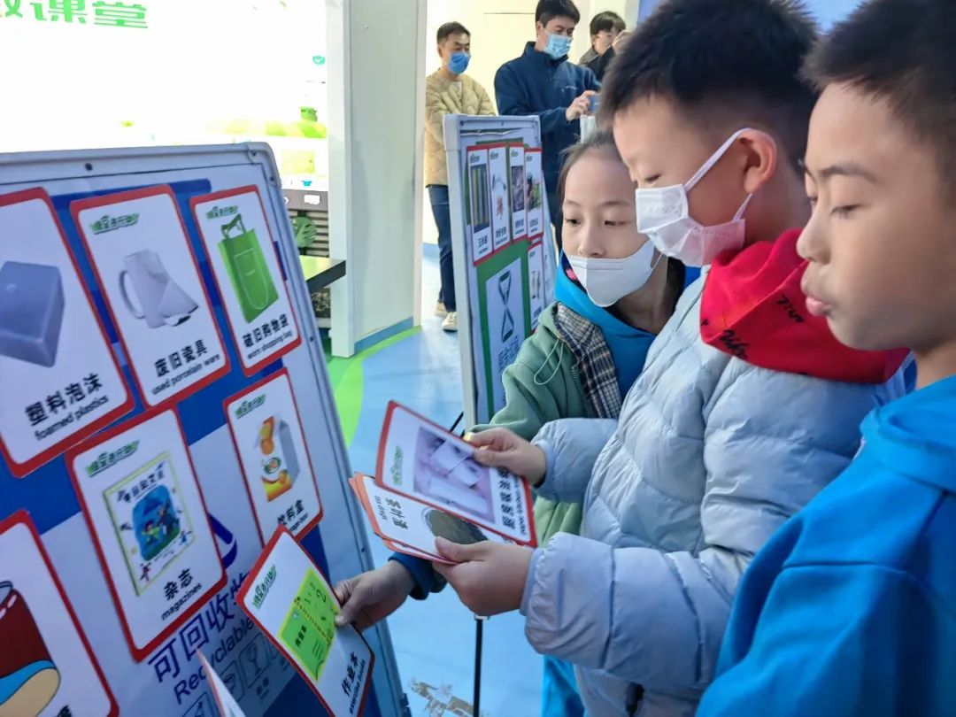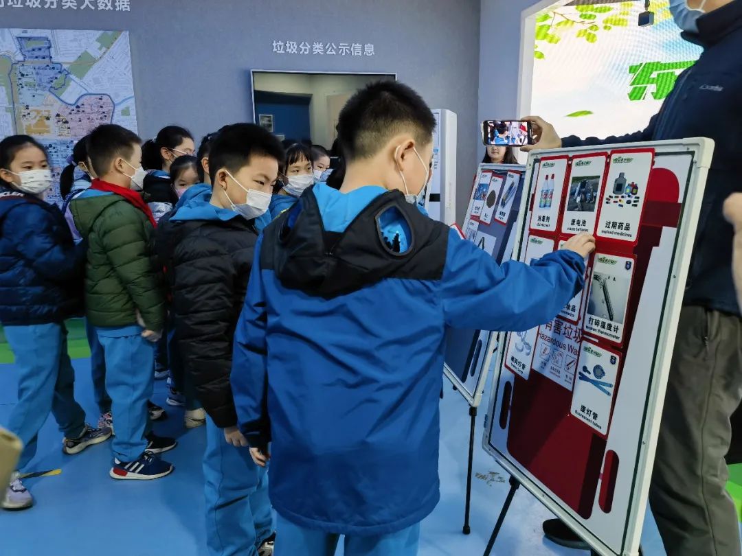 科普微展厅内通过文字宣传、动手参与、创意空间等多种形式与内容,普及垃圾分类知识,小朋友动手操作更容易记住垃圾如何分类。