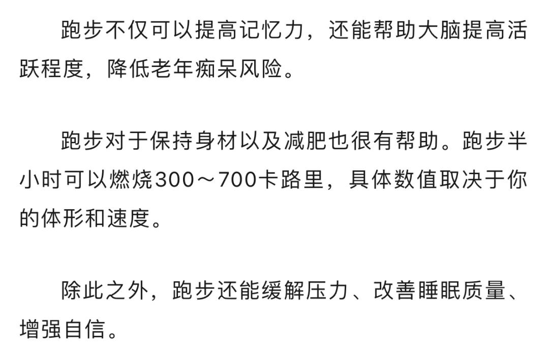 跑步益处多多,可提高人的整体健康水平。