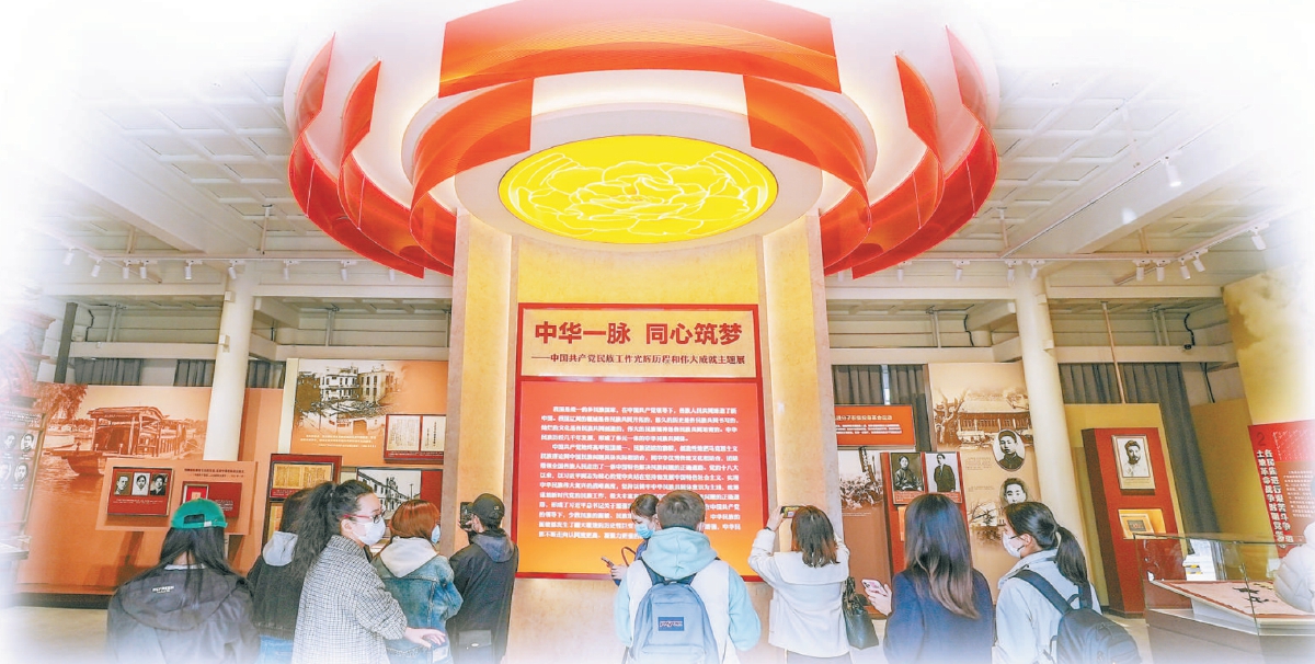 蒙藏学校旧址西院,“中华一脉 同心筑梦——中国共产党民族工作光辉历程和伟大成就主题展”正在展出。