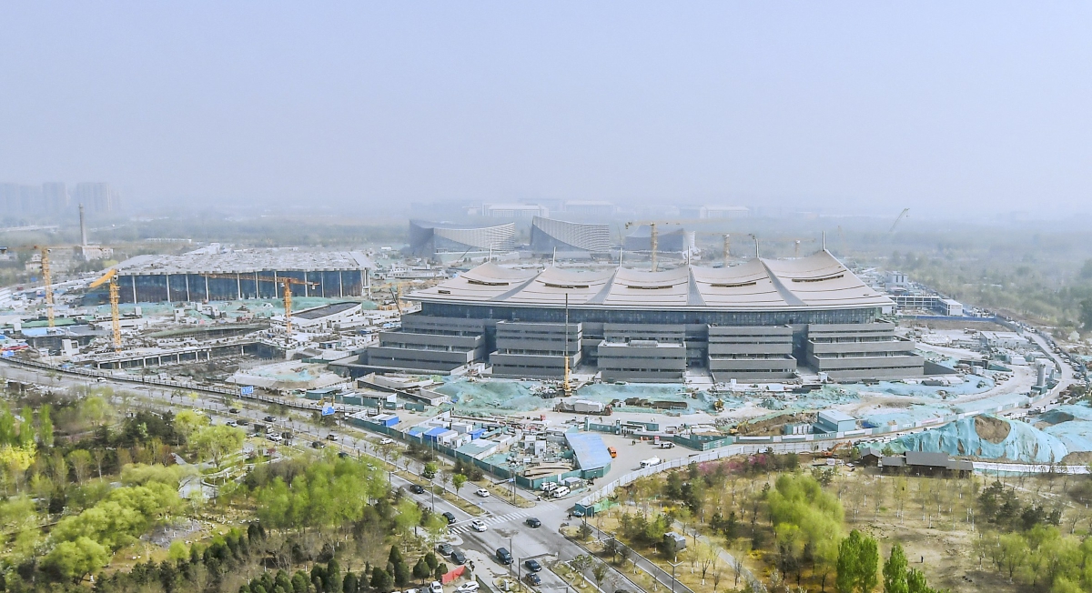 在春日温暖的午后,绚丽多彩的阳光倾洒在首都博物馆东馆项目施工现场,从高空俯瞰,这座正冲刺基本完工的建筑,宛若一艘帆船,即将在绿洲中扬帆起航。